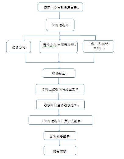 3、市政管網:管網運維部聯(lián)系維修公司(或營抄中心、宏圖營業(yè)所);原水管道:管網運維部聯(lián)系二水廠(或加壓站、三水廠);