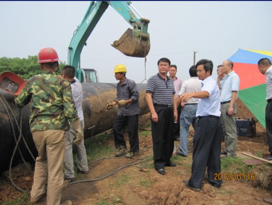 總經(jīng)理陳衛(wèi)國(左四)、黨委書記陳永根(右二)在城區(qū)安全飲水工程施工現(xiàn)場聽取施工負責(zé)人匯報,要求加快進程,確保質(zhì)量,按時完工,向全市人民交上一份合格答卷。