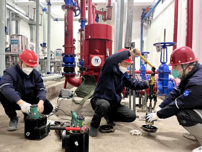 新年伊始,集團營抄中心接到電話求助,反映京奧·城市奧特萊斯廣場無水。維修人員立即響應,僅用6分鐘便趕赴現(xiàn)場。經(jīng)初步排查,發(fā)現(xiàn)因泵房電機進水,自控系統(tǒng)失效、泵機不運作,導致無法供水。演練多日,用在一時。維修班長快速分工,班員們各司其職,迅速投入“戰(zhàn)斗”。一人操作控制系統(tǒng),兩人現(xiàn)場快速拆機,更換進水軸承,烘干定子線圈和轉(zhuǎn)子,對線圈進行絕緣處理,整個過程一氣呵成,有條不紊。三人同步作業(yè),最終僅耗時4個多小時,完成6臺電機搶修,恢復了供水。24小時后,維修人員再探現(xiàn)場,復查數(shù)據(jù)參數(shù)和供水壓力,加固所有連接件,確保萬無一失。