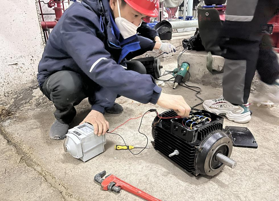 [圖為維修后檢測電機絕緣性能]