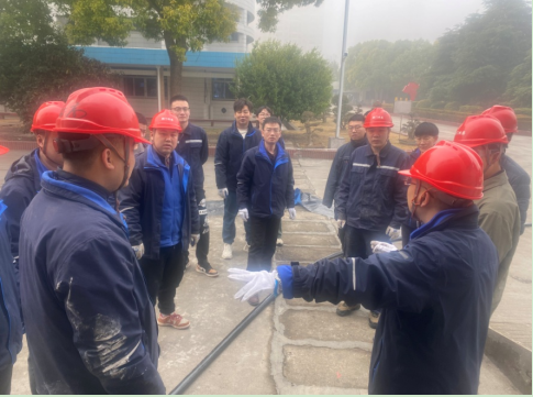 為做好今夏供水高峰應(yīng)對準(zhǔn)備,三水廠提前謀劃工作,組織敷設(shè)電纜。該項工作量大、任務(wù)重,需要眾多人員參與,2月24日,在安全員做好安全交底后,全廠男職工迅速投入“戰(zhàn)斗”,