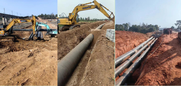 圖為高鐵片區(qū)供水管道施工現(xiàn)場(chǎng)