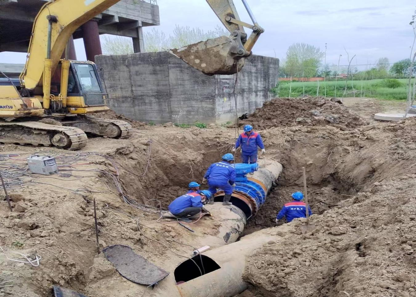 為優(yōu)化胡集鎮(zhèn)供水管網(wǎng),提高供水系統(tǒng)效能,荊襄供水公司及施工單位經(jīng)過(guò)21小時(shí)的艱苦奮戰(zhàn),4月10日凌晨,完成關(guān)山沉砂池及關(guān)山加壓站兩處DN1000新舊管道碰頭接駁施工,并恢復(fù)供水。