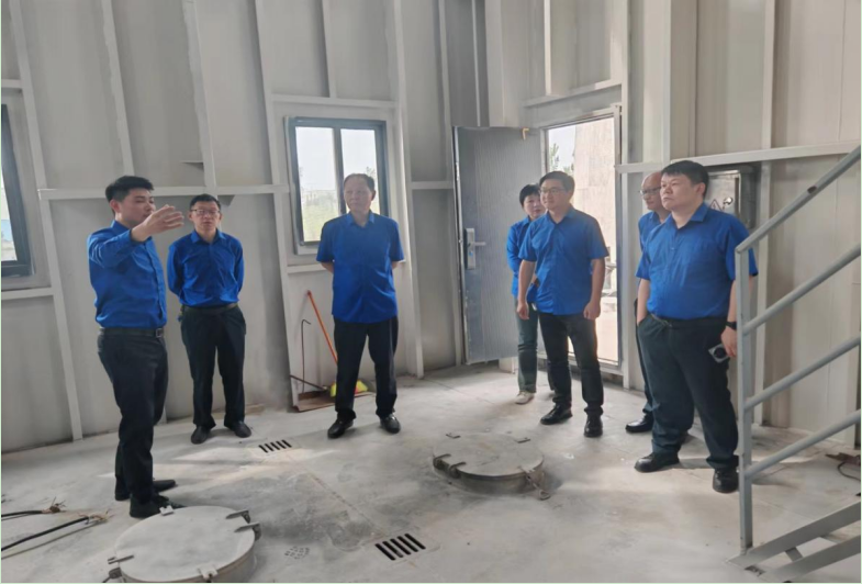 圖為董事會(huì)一行查看取水浮船試運(yùn)行調(diào)試現(xiàn)場