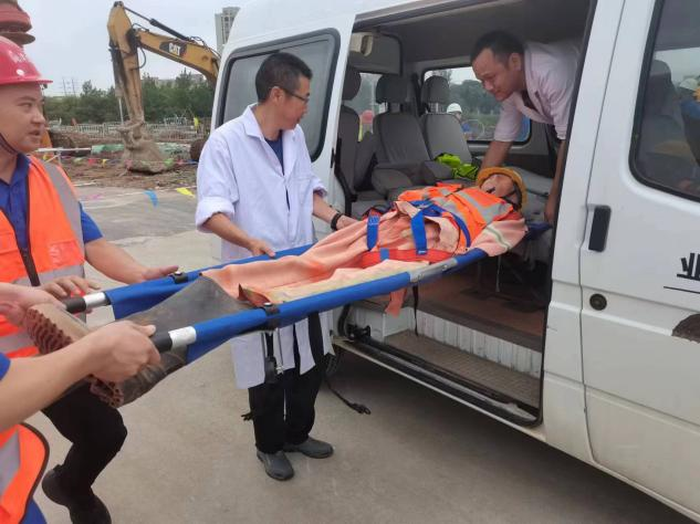 本次演練結(jié)合現(xiàn)場實際情況,生動模擬了施工過程中“因突發(fā)雙排腳手架倒塌導致作業(yè)人員墜落并被擠壓”的緊急情況。所有參與人員嚴格按照崗位職責,高效完成了從發(fā)現(xiàn)上報、應急響應、現(xiàn)場指揮、警戒設立、搶險救援到醫(yī)療救護等一系列應急處置流程。各方協(xié)同聯(lián)動,僅用15分鐘即完成演練任務,達到預期效果。