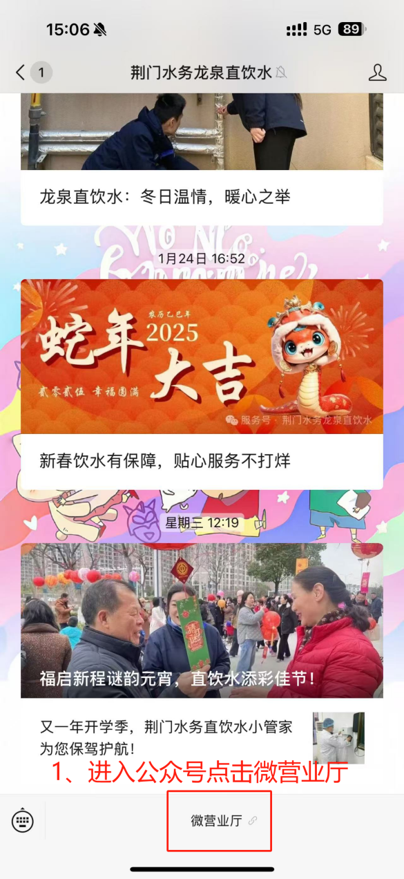 或者打開微信,點(diǎn)擊右上角的“+”,選擇“添加朋友”,在搜索框中輸入“荊門水務(wù)龍泉直飲水”,點(diǎn)擊搜索,再“關(guān)注”。