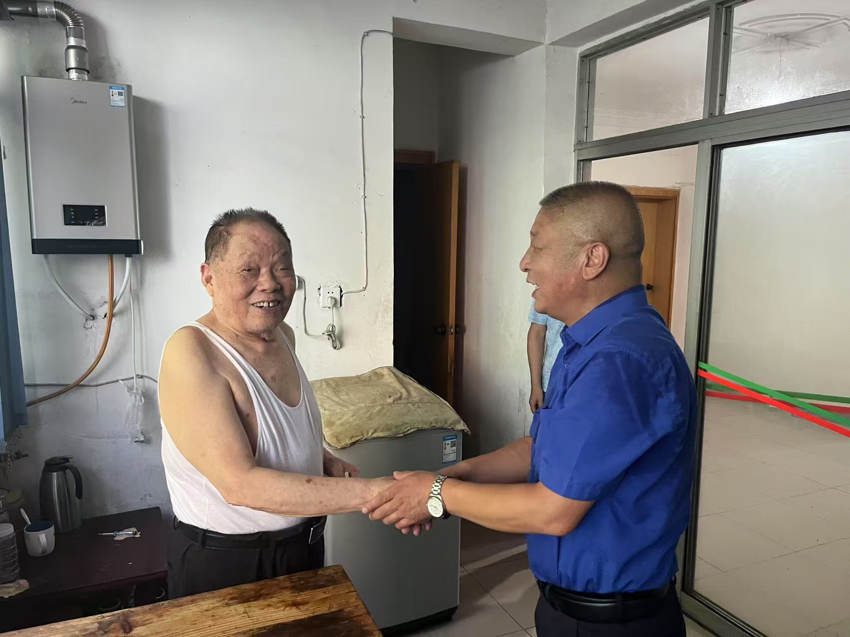 “八一”前夕,集團(tuán)工會組織走訪2戶困難退休退役軍人家庭,詳細(xì)詢問他們的身體狀況和生活情況,向他們送去誠摯的問候和祝福。“感謝組織一直記掛著我們!”退休老兵緊握工作人員的雙手,感慨良多。