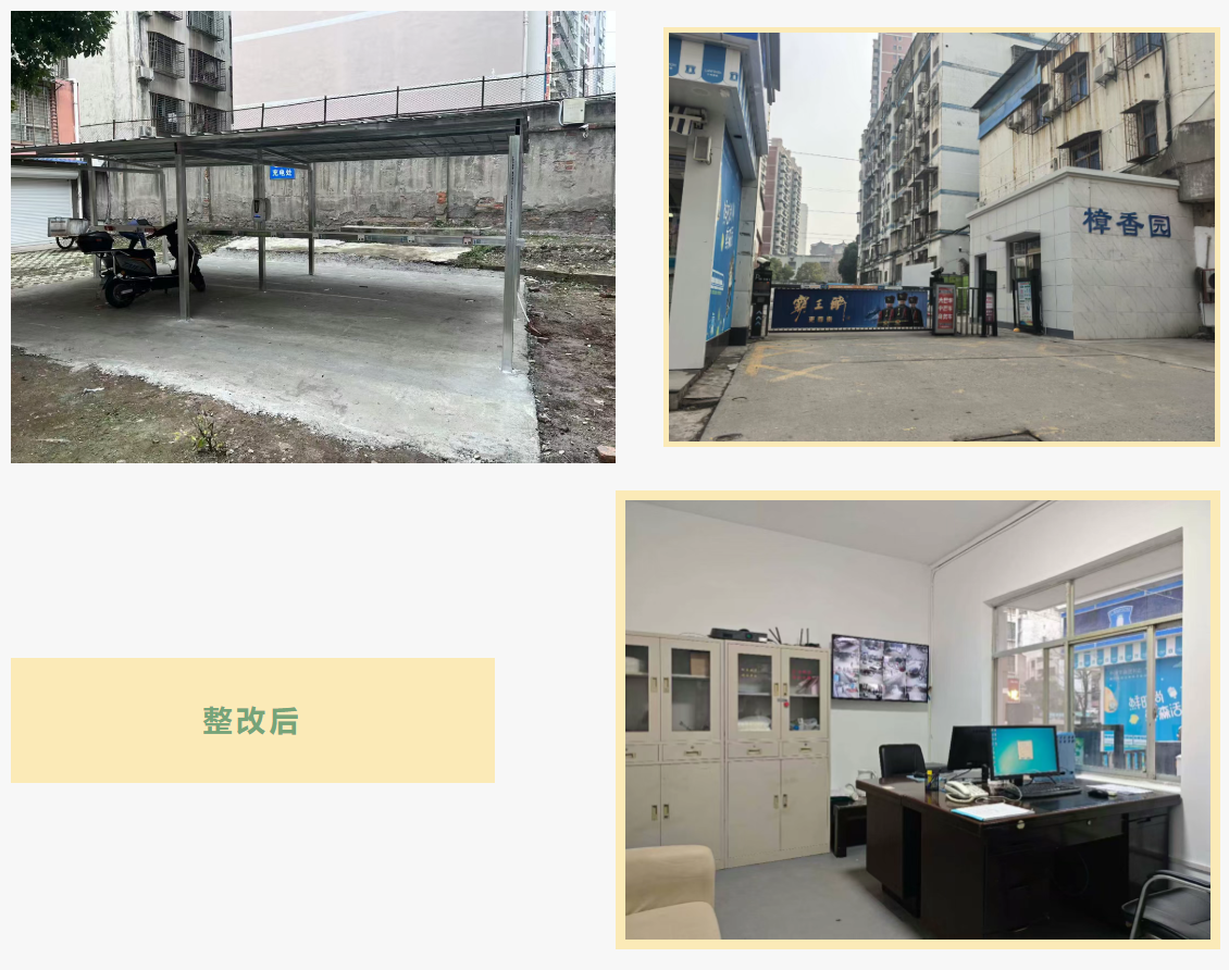 鑫泉物業(yè)公司對癥施策,改造物業(yè)辦公場所,設(shè)置便民窗口,實現(xiàn)公共區(qū)域監(jiān)控全覆蓋,新增太陽能路燈,更換樓道感應(yīng)燈,新建帶充電設(shè)施的非機(jī)動車棚,修剪綠植,清理雜物,小區(qū)環(huán)境煥然一新,居住體驗大幅提升。