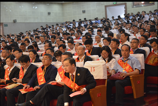 荊門市勞動模范、供水總公司黨委書記、總經(jīng)理陳永根(二排右三)在會議現(xiàn)場