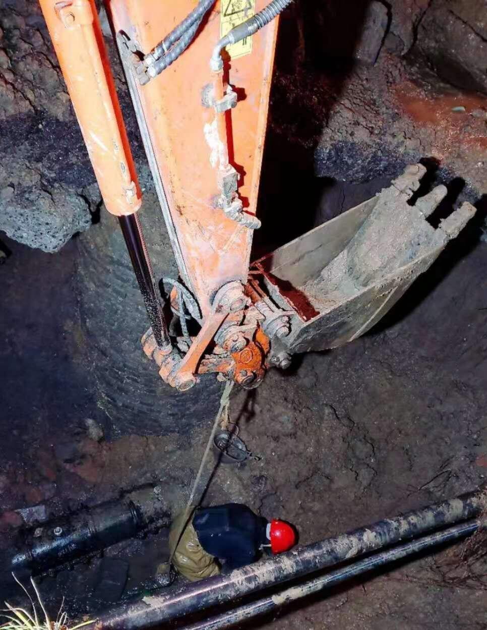 黃磊在建設(shè)街DN200管道搶修中開鑿出搶修坑
