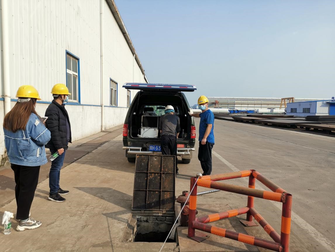 荊門盈德氣體有限公司位于荊門化工循環(huán)產(chǎn)業(yè)園內(nèi),該公司石化油品升級(jí)改造工程配套煤制氫綜合利用項(xiàng)目用水量最高為2.8萬(wàn)立方米/日(市供水總公司所供),為我市用水大戶。雖然該公司于去年9月建成投產(chǎn),但廠區(qū)內(nèi)管網(wǎng)、工藝管道內(nèi)仍存在漏水情況。由于廠內(nèi)正在生產(chǎn),噪音過(guò)大,給測(cè)試工作帶去些許不便,但管網(wǎng)“檢驗(yàn)師”還是用聽漏儀傳感器緊貼地面,努力完成了測(cè)探漏分析,最終找出漏水點(diǎn)1處,估計(jì)日漏水量近200噸。破損管網(wǎng)修復(fù)后,估計(jì)可為該公司避免經(jīng)濟(jì)損失500元/日。